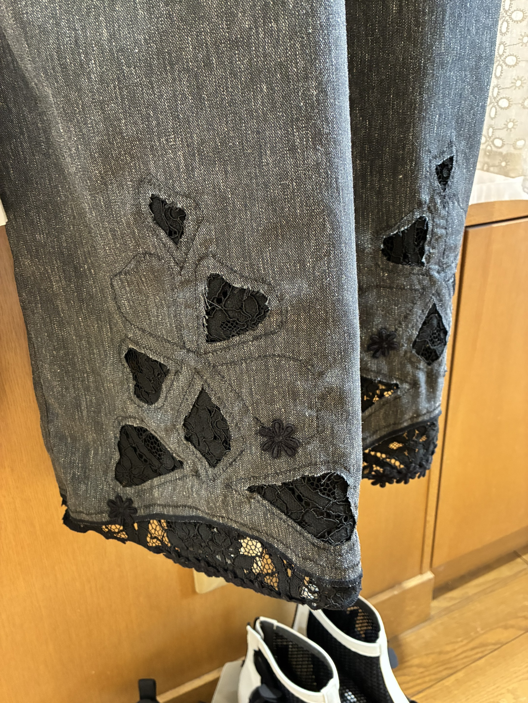 裾部分にハンドカットによる花柄のレースや刺繍が施されており、足元を華やかに見せるのが特徴です。