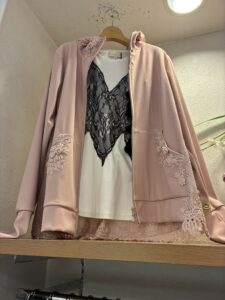 インナーにはレーストップスを合わせて上品に、Tシャツやデニムでラフに着こなすのもおすすめ。羽織るだけでコーデを華やかにしてくれる、着回し力の高い一着です。
