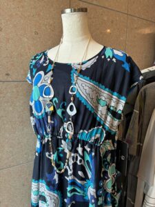 こちらのワンピースも、ダナパリらしい鮮やかなブルーを基調としたペイズリー風の総柄デザインです