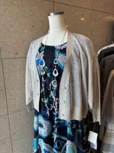 ウエスト部分がシェイプされており、スタイルを美しく見せるシルエットが特徴的です